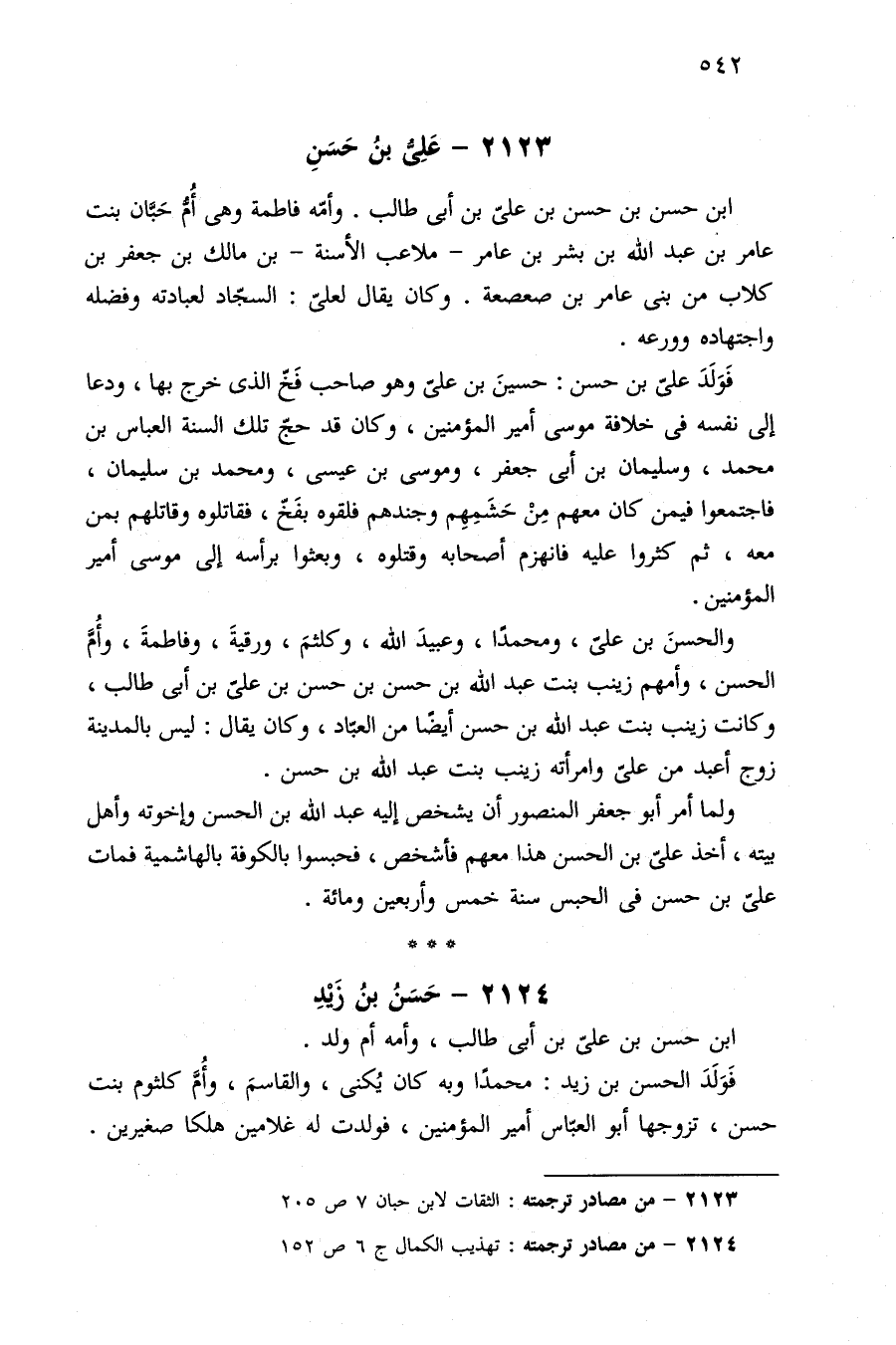 ٢١٢٣ - من مصادر ترجمته: الثقات لابن حبان ٧ ص ٢٠٥