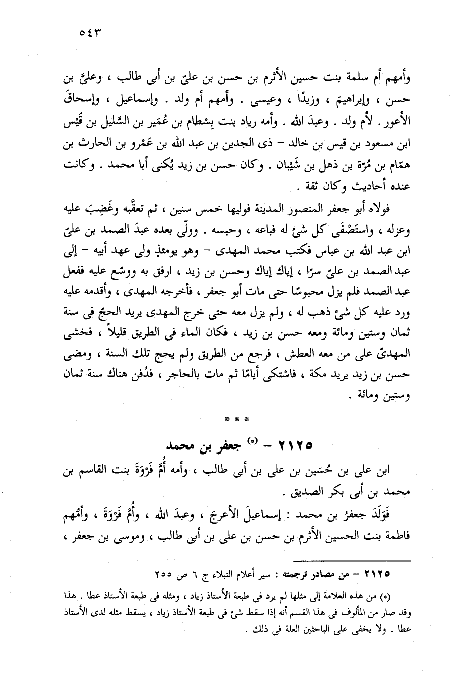 ٢١٢٥ - من مصادر ترجمته: سير أعلام النبلاء ج ٦ ص ٢٥٥