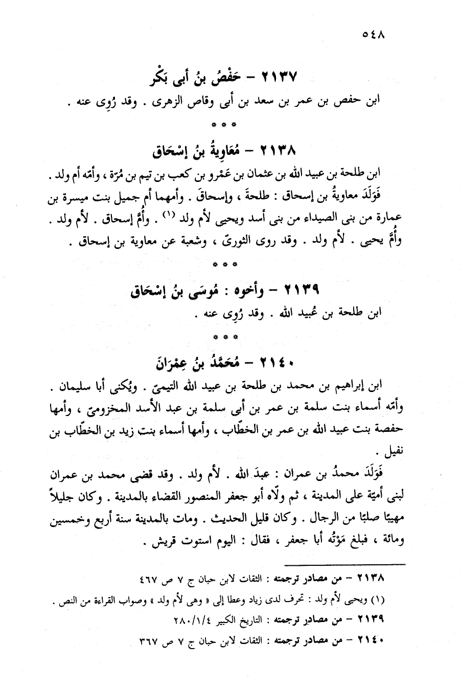 ٢١٤٠ - من مصادر ترجمته: الثقات لابن حبان ج ٧ ص ٣٦٧