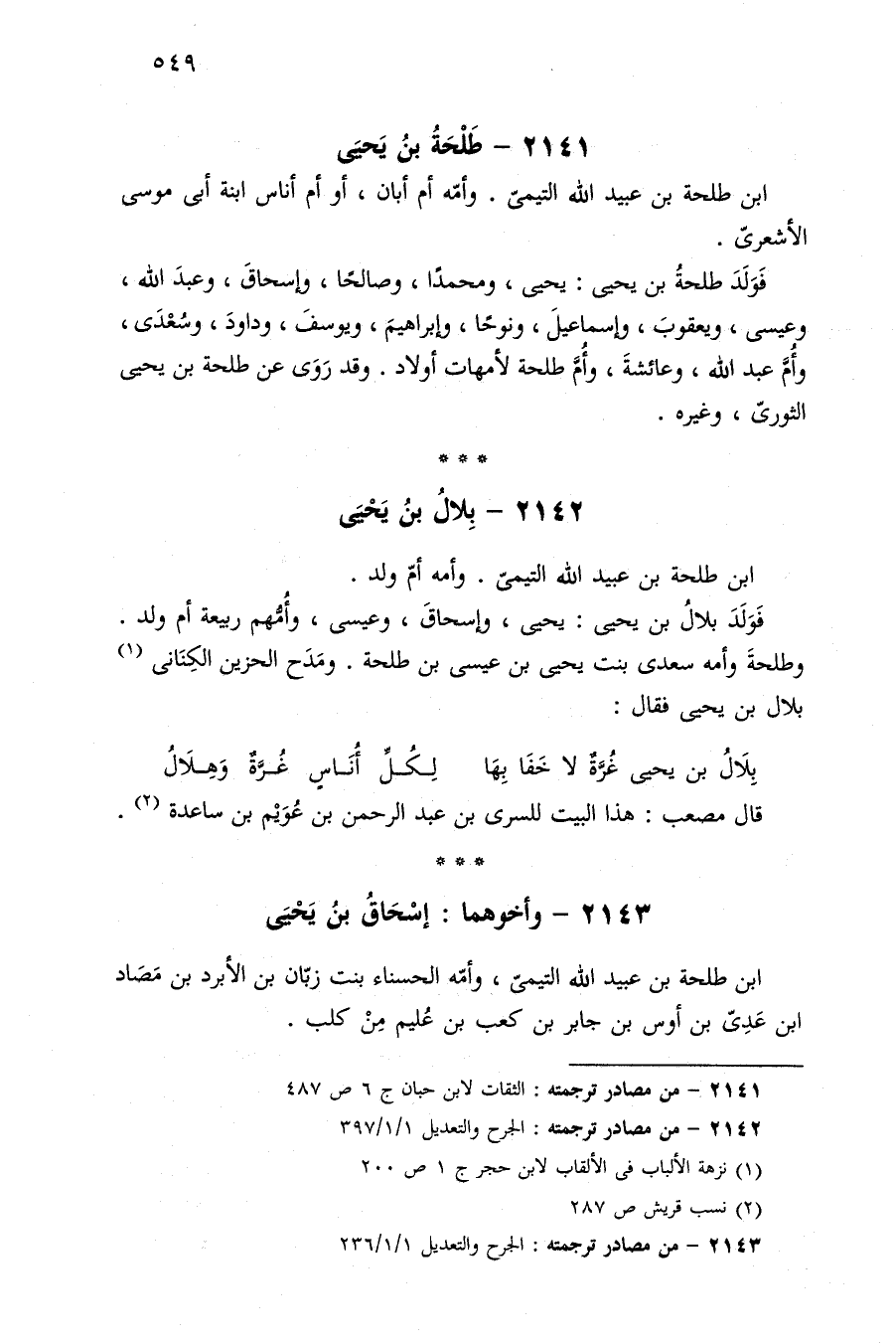 ٢١٤٣ - من مصادر ترجمته: الجرح والتعديل ١/ ١/ ٢٣٦