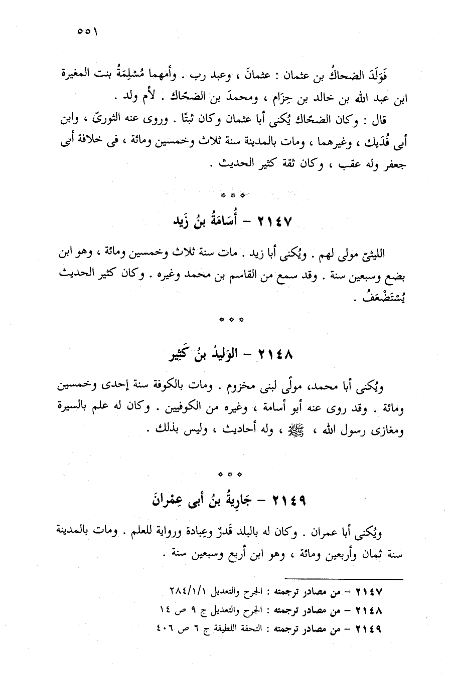 ٢١٤٩ - من مصادر ترجمته: التحفة اللطيفة ج ٦ ص ٤٠٦