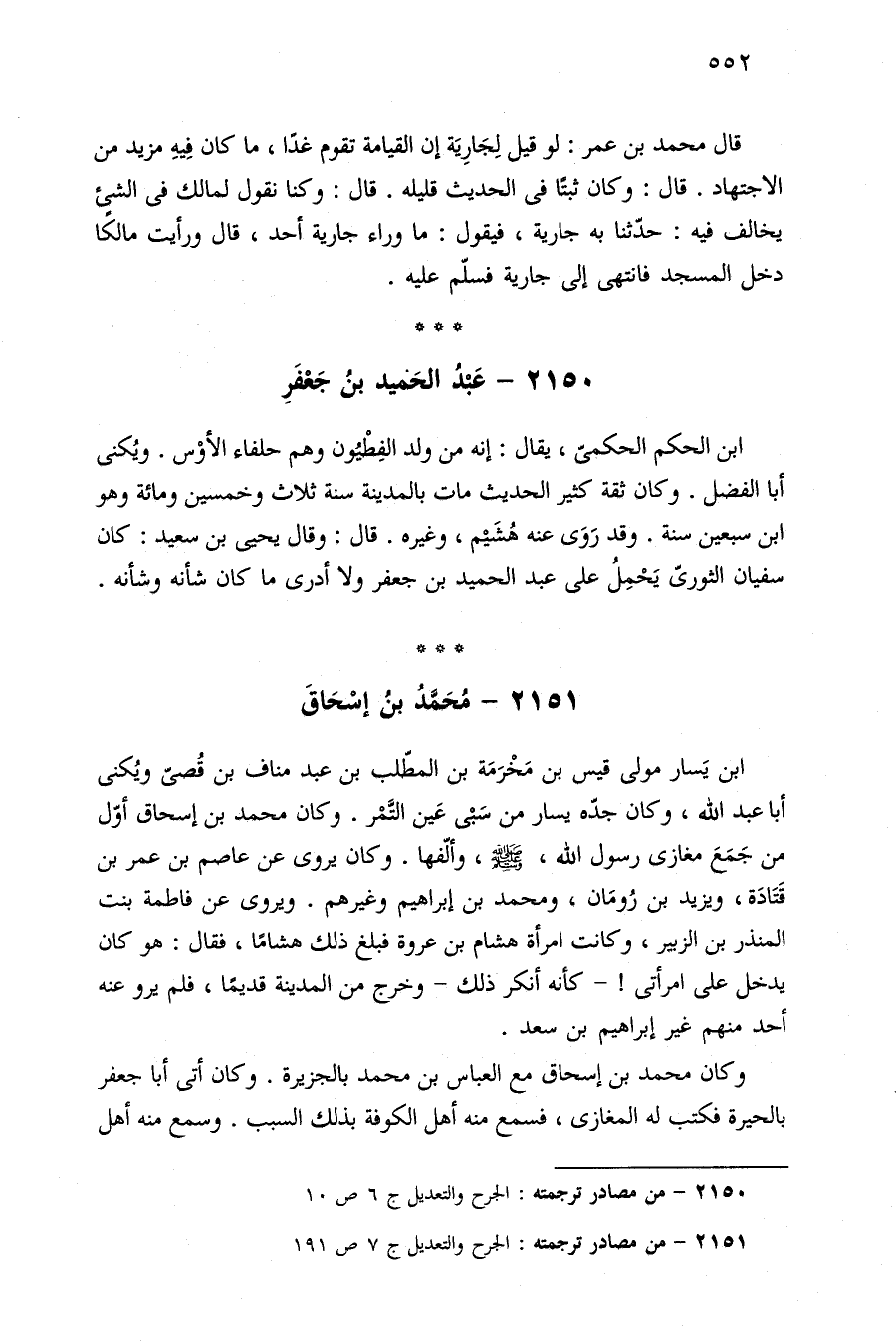 ٢١٥٠ - من مصادر ترجمته: الجرح والتعديل ج ٦ ص ١٠