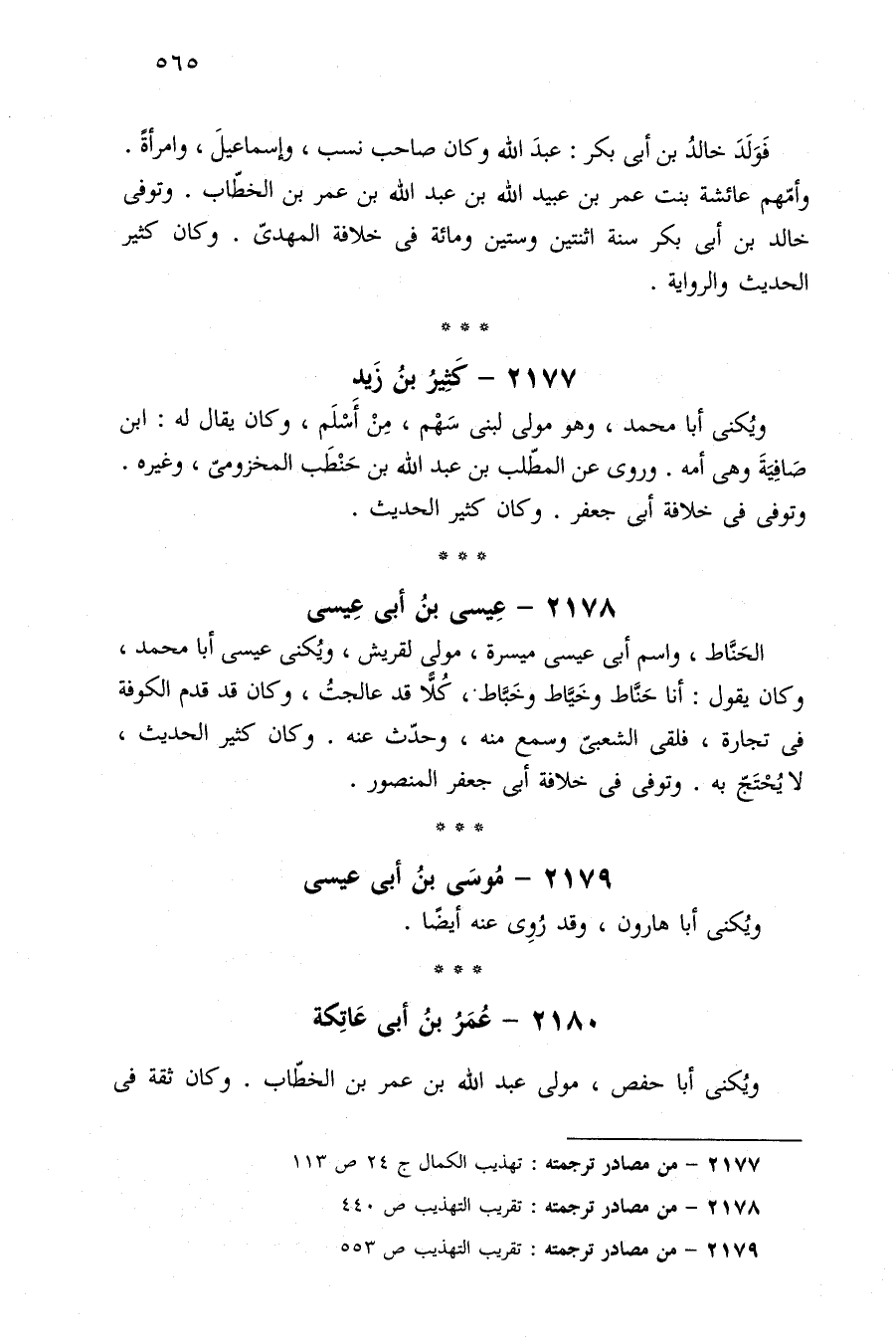 ٢١٧٧ - من مصادر ترجمته: تهذيب الكمال ج ٢٤ ص ١١٣