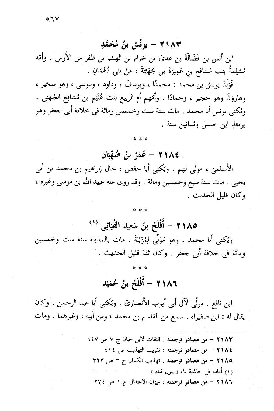 ٢١٨٥ - من مصادر ترجمته: تهذيب الكمال ج ٣ ص ٣٢٣