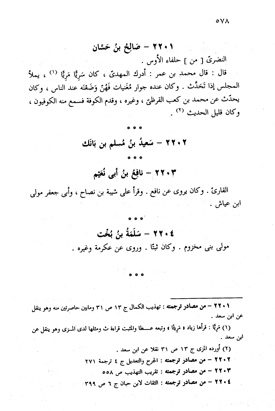 ٢٢٠٤ - من مصادر ترجمته: الثقات لابن حبان ج ٦ ص ٣٩٩