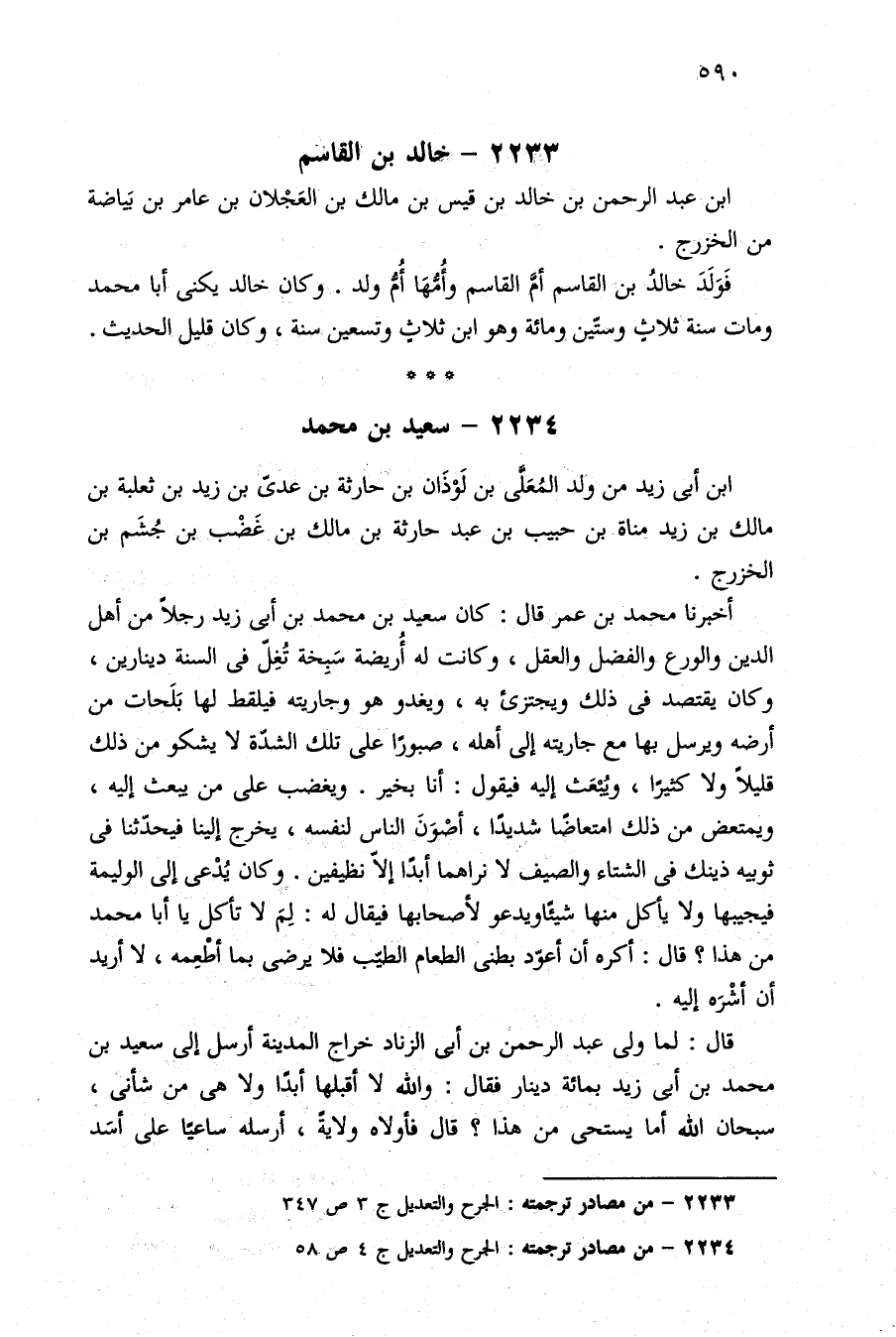 ٢٢٣٣ - من مصادر ترجمته: الجرح والتعديل ج ٣ ص ٣٤٧