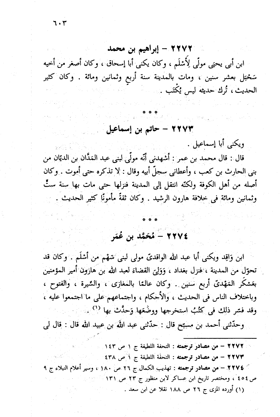 ٢٢٧٣ - من مصادر ترجمته: التحفة اللطيفة ج ١ ص ٤٣٨
