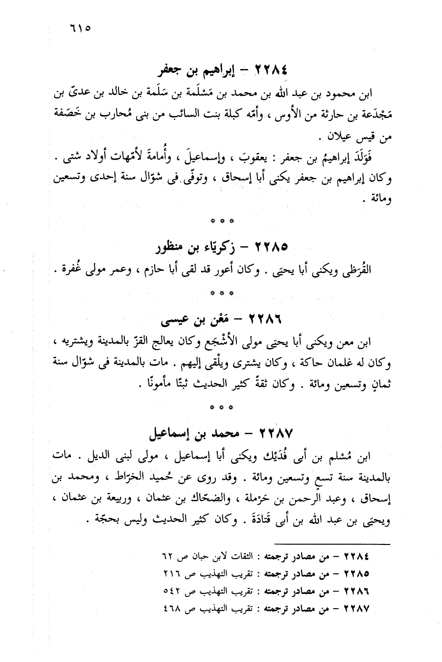 ٢٢٨٦ - من مصادر ترجمته: تقريب التهذيب ص ٥٤٢