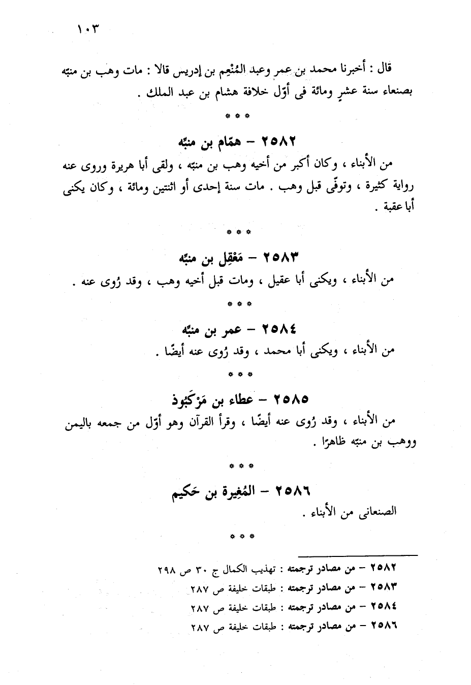 ٢٥٨٣ - من مصادر ترجمته: طبقات خليفة ص ٢٨٧