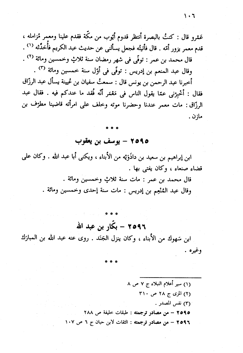 ٢٥٩٦ - من مصادر ترجمته: الثقات لابن حبان ج ٦ ص ١٠٧