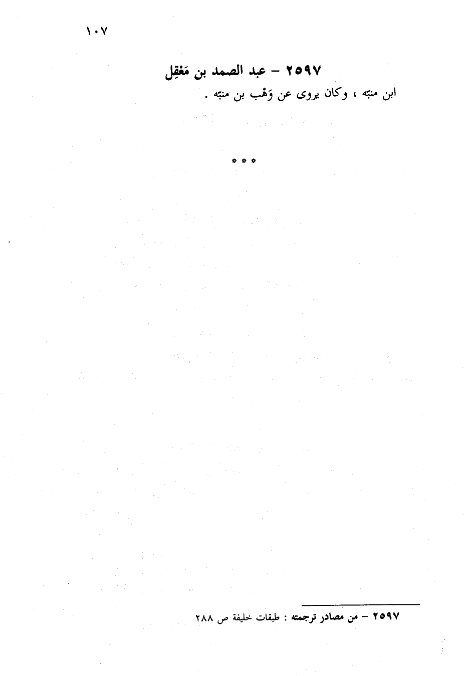 ٢٥٩٧ - من مصادر ترجمته: طبقات خليفة ص ٢٨٨