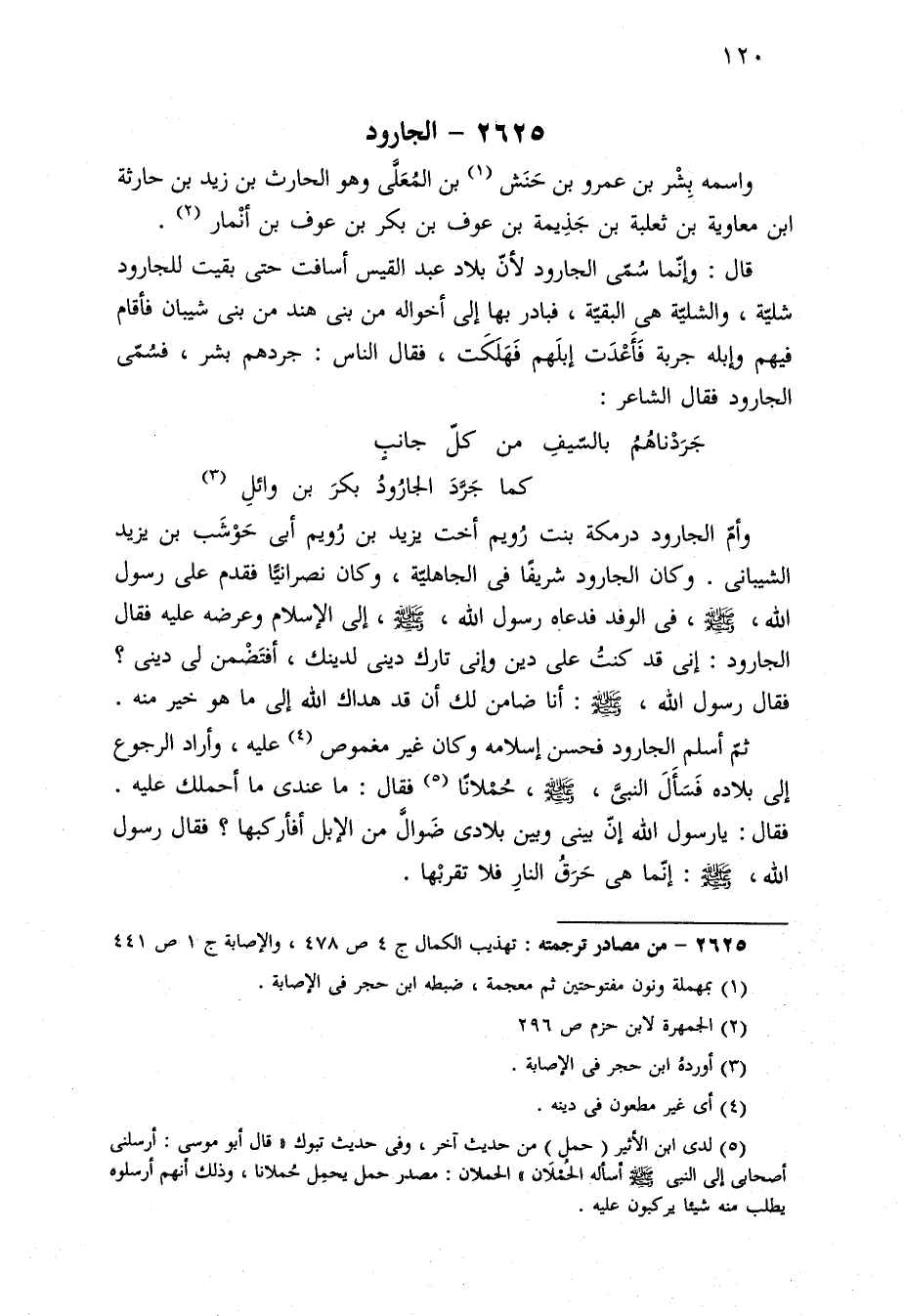 ٢٦٢٥ - من مصادر ترجمته: تهذيب الكمال ج ٤ ص ٤٧٨، والإصابة ج ١ ص ٤٤١.