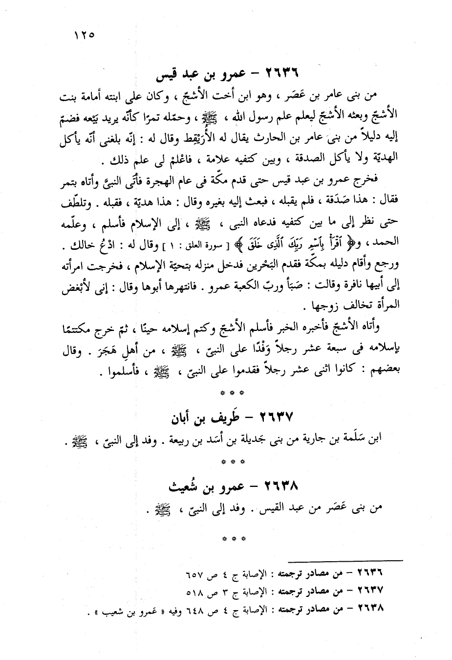 ٢٦٣٨ - من مصادر ترجمته: الإصابة ج ٤ ص ٦٤٨ وفيه "عَمرو بن شعيب".