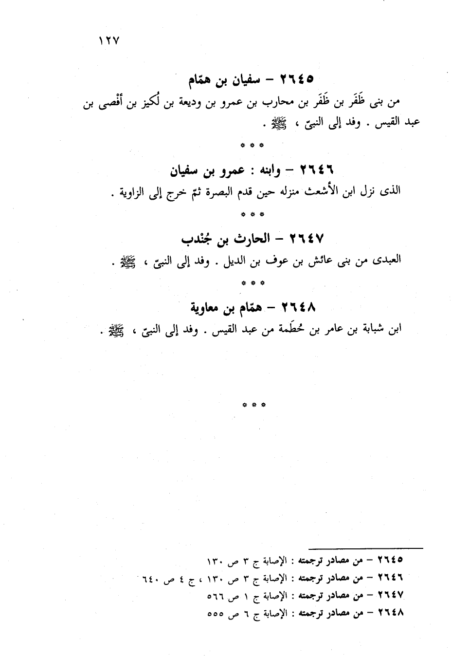 ٢٦٤٦ - من مصادر ترجمته: الإصابة ج ٣ ص ١٣٠، ج ٤ ص ٦٤٠.