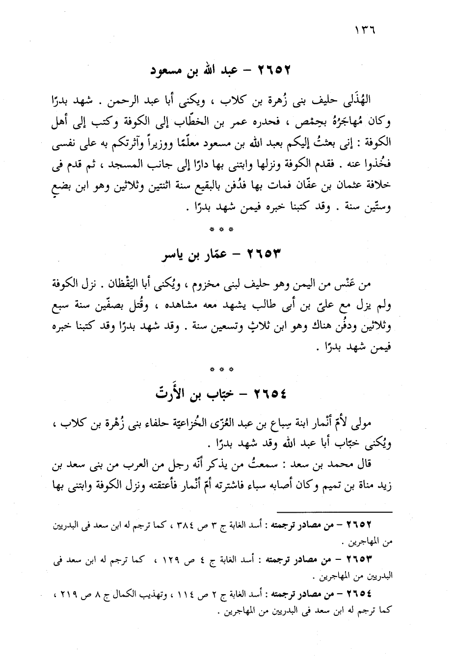٢٦٥٢ - من مصادر ترجمته: أسد الغابة ج ٣ ص ٣٨٤، كما ترجم له ابن سعد في البدريين من المهاجرين.