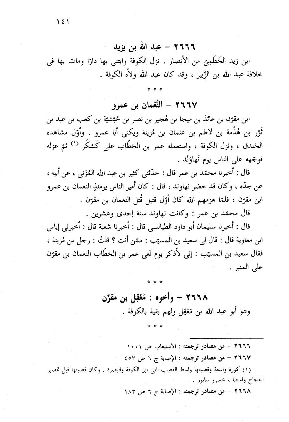 ٢٦٦٨ - من مصادر ترجمته: الإصابة ج ٦ ص ١٨٣.