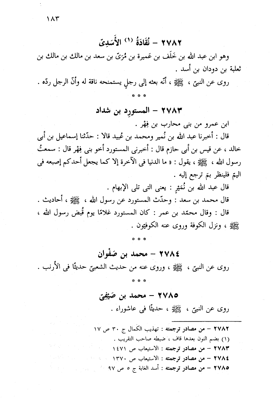 ٢٧٨٥ - من مصادر ترجمته: أسد الغابة ج ٥ ص ٩٧.