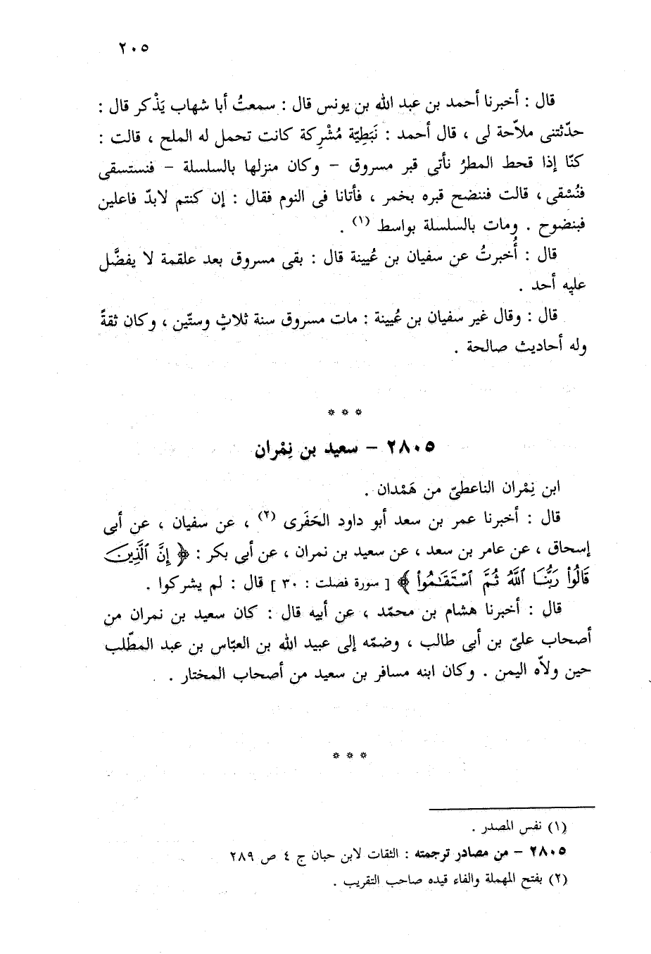 ٢٨٠٥ - من مصادر ترجمته: الثقات لابن حبان ج ٤ ص ٢٨٩.