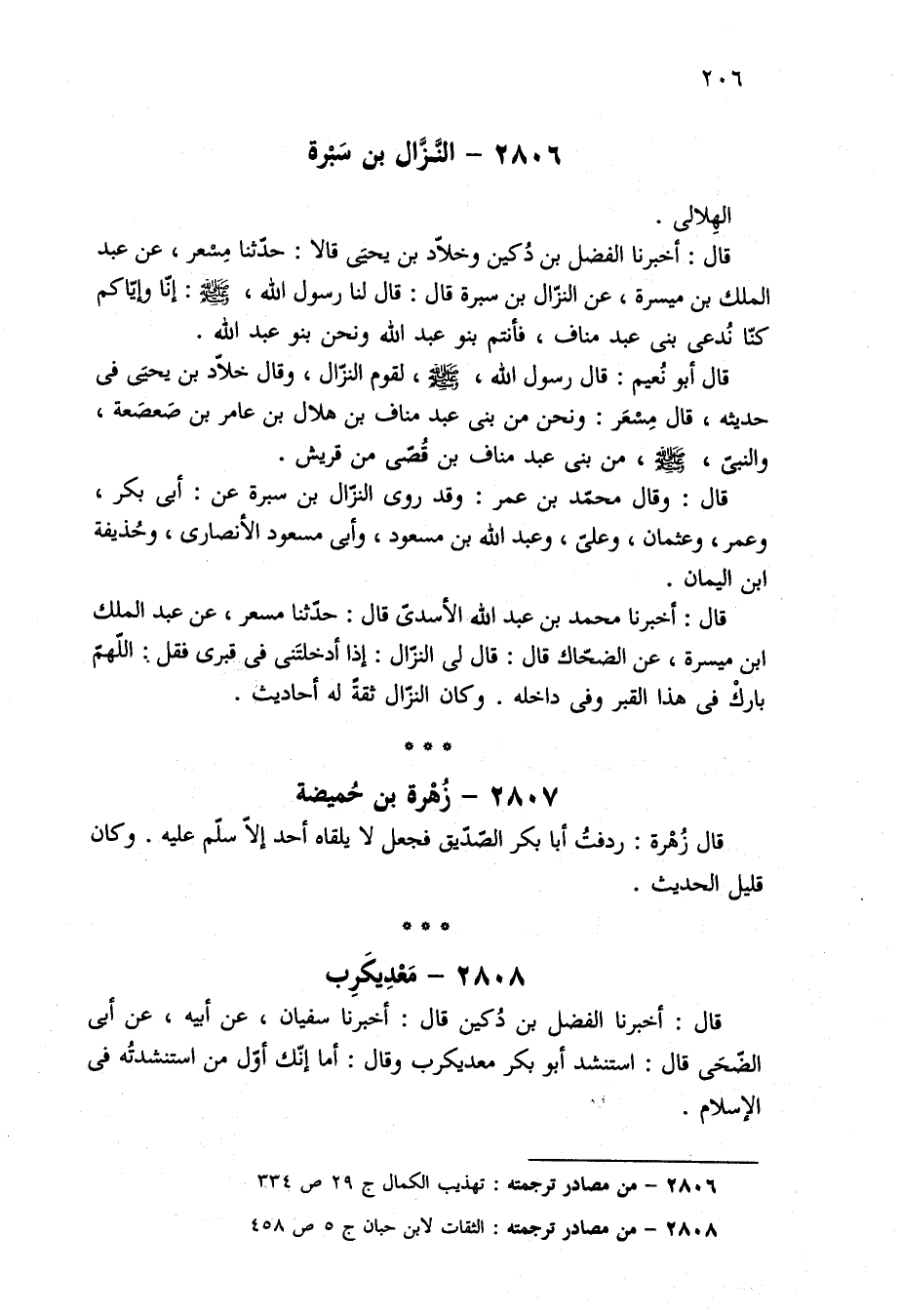 ٢٨٠٦ - من مصادر ترجمته: تهذيب الكمال ج ٢٩ ص ٣٣٤.