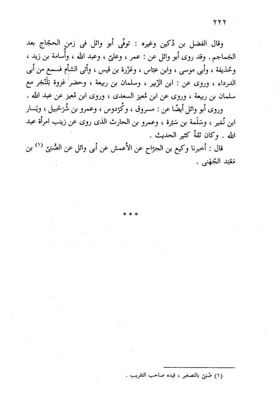 قال: أخبرنا وكيع بن الجرّاح عن الأعمش عن أبي وائل عن الصُّبَيّ (¬١) بن مَعْبَد الجُهَنى.