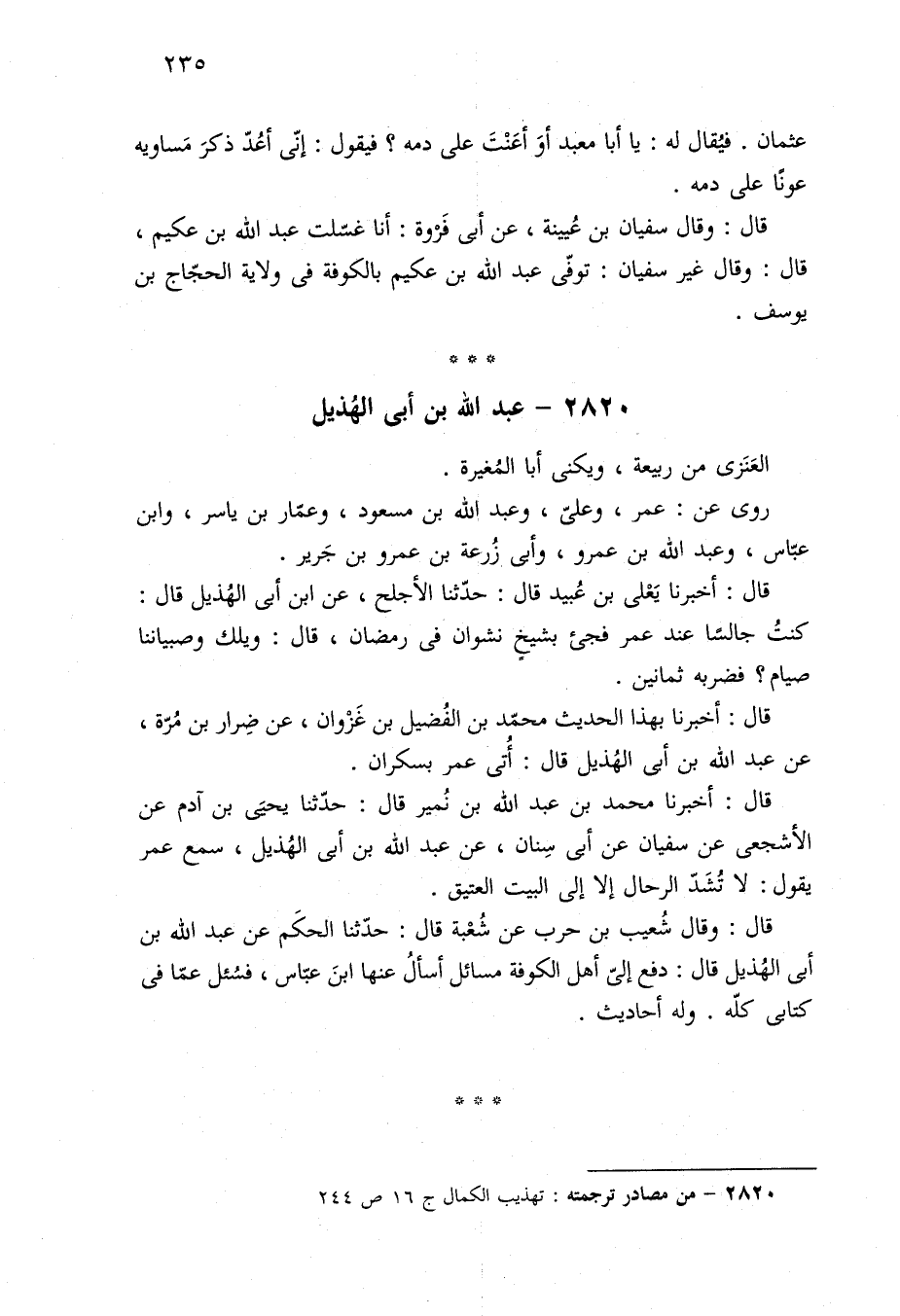 ٢٨٢٠ - من مصادر ترجمته: تهذيب الكمال ج ١٦ ص ٢٤٤.