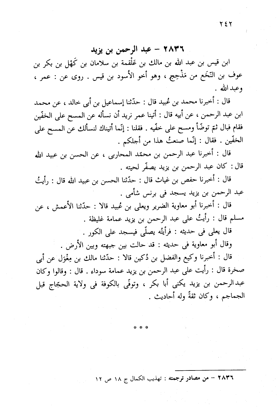 ٢٨٣٦ - من مصادر ترجمته: تهذيب الكمال ج ١٨ ص ١٢.