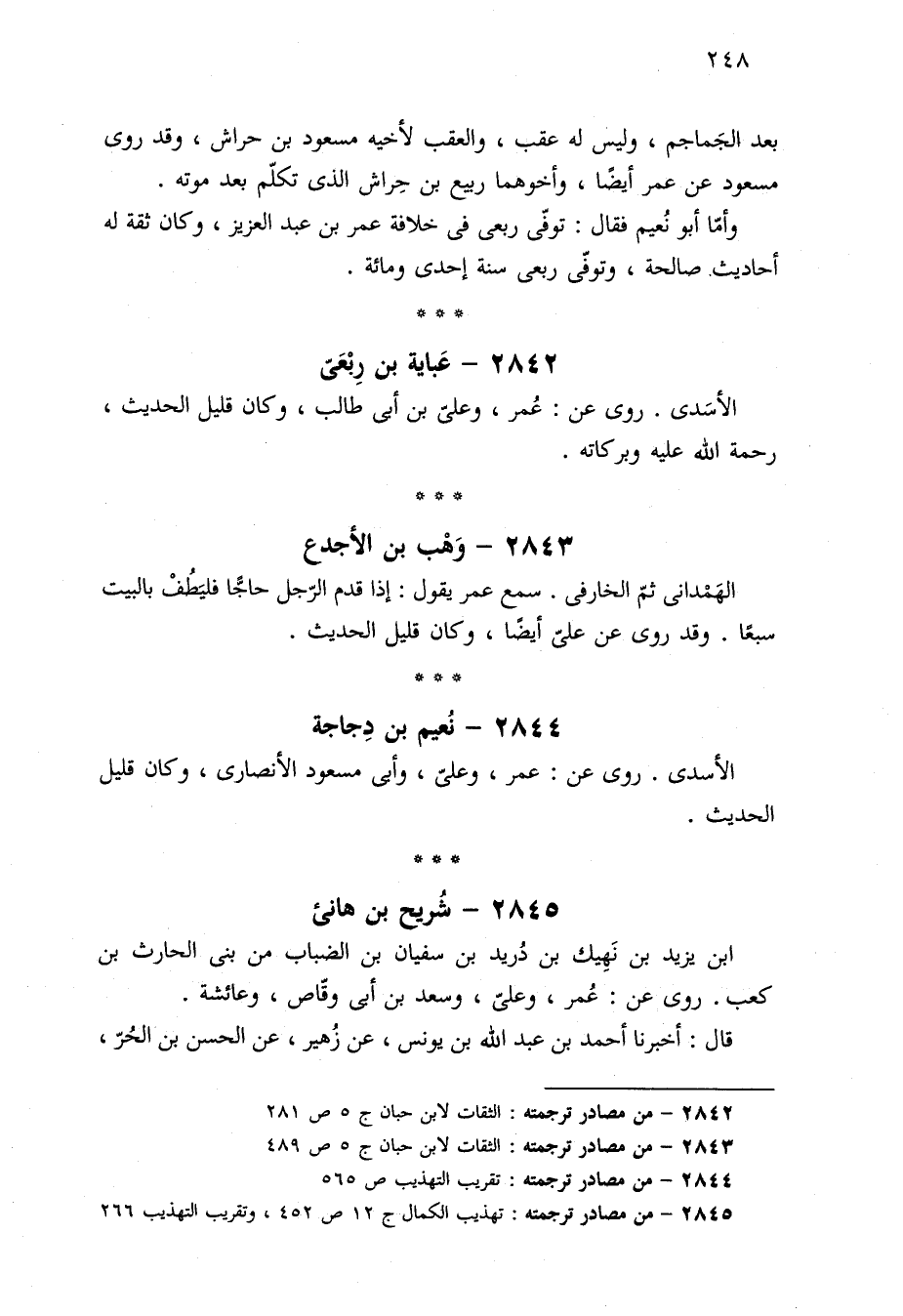 ٢٨٤٢ - من مصادر ترجمته: الثقات لابن حبان ج ٥ ص ٢٨١.