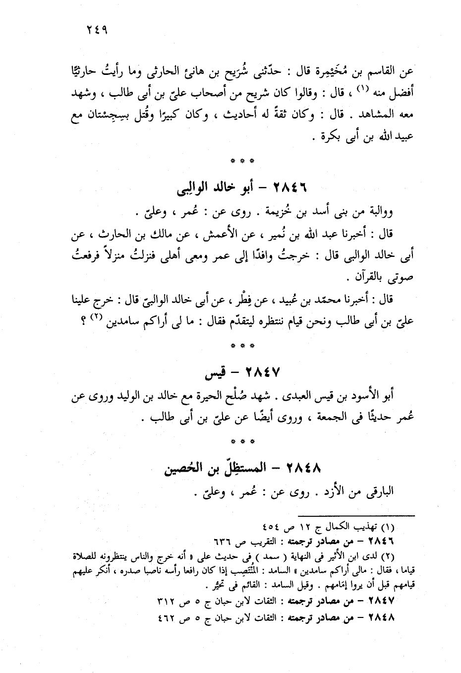 ٢٨٤٨ - من مصادر ترجمته: الثقات لابن حبان ج ٥ ص ٤٦٢.