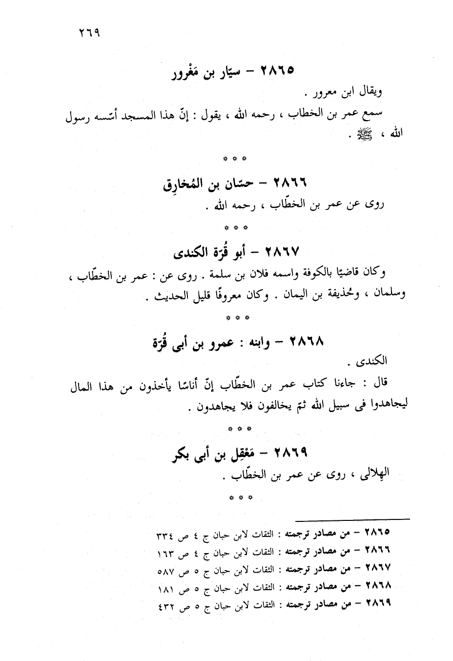 ٢٨٦٩ - من مصادر ترجمته: الثقات لابن حبان ج ٥ ص ٤٣٢.