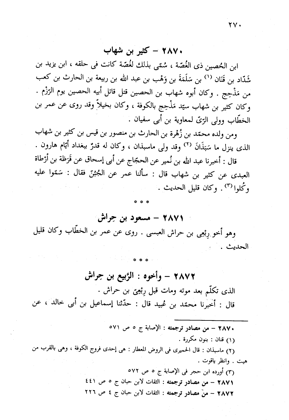 ٢٨٧٠ - من مصادر ترجمته: الإصابة ج ٥ ص ٥٧١.