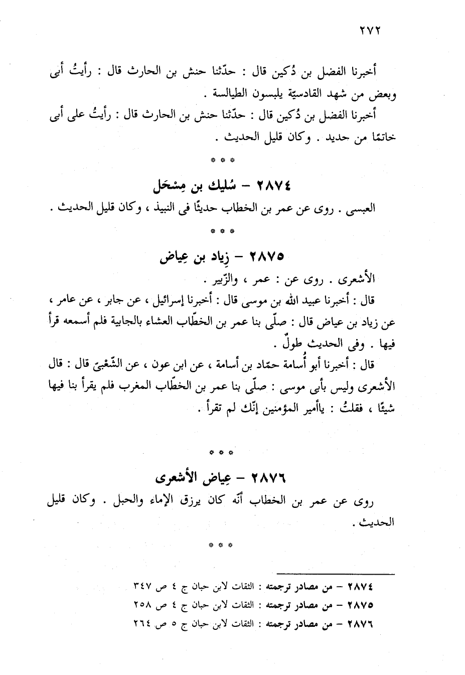 ٢٨٧٥ - من مصادر ترجمته: الثقات لابن حبان ج ٤ ص ٢٥٨.