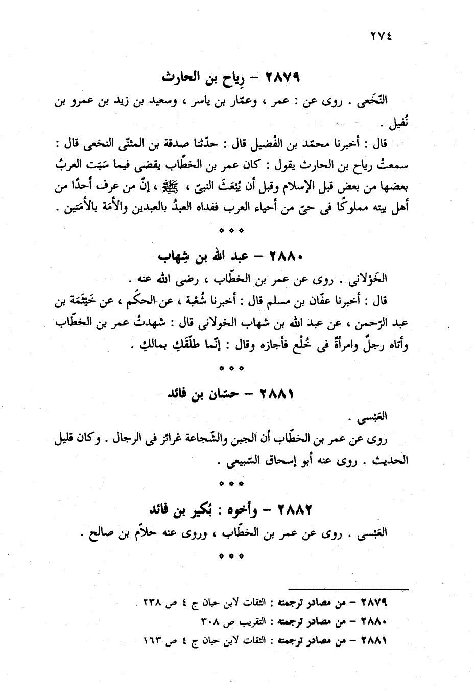 ٢٨٧٩ - من مصادر ترجمته: الثقات لابن حبان ج ٤ ص ٢٣٨.
