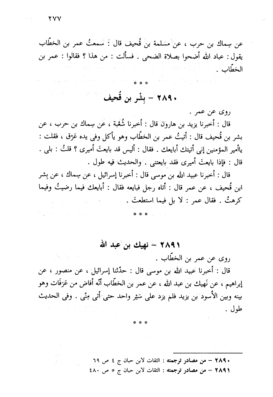 ٢٨٩٠ - من مصادر ترجمته: الثقات لابن حبان ج ٤ ص ٦٩.