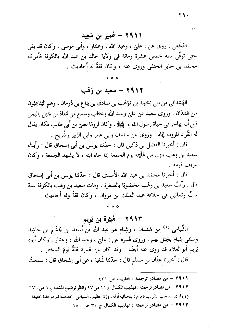 ٢٩١٣ - من مصادر ترجمته: تهذيب الكمال ج ٣٠ ص ١٥٠.