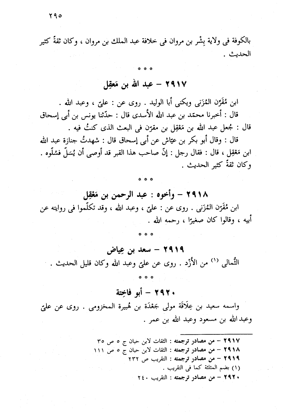 ٢٩١٨ - من مصادر ترجمته: الثقات لابن حبان ج ٥ ص ١١١.