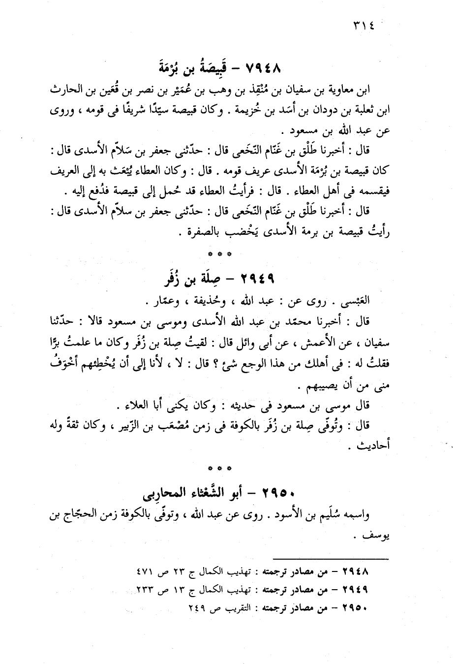 ٢٩٤٩ - من مصادر ترجمته: تهذيب الكمال ج ١٣ ص ٢٣٣.