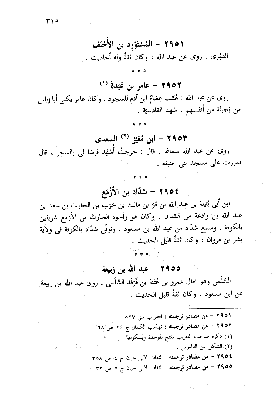٢٩٥٤ - من مصادر ترجمته: الثقات لابن حبان ج ٤ ص ٣٥٨.
