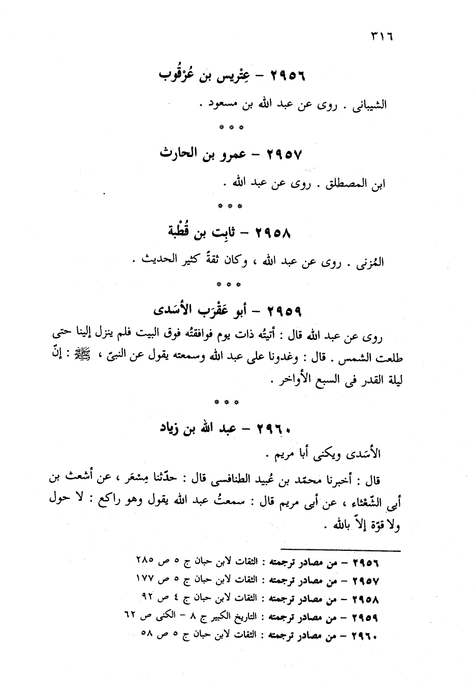٢٩٦٠ - من مصادر ترجمته: الثقات لابن حبان ج ٥ ص ٥٨.