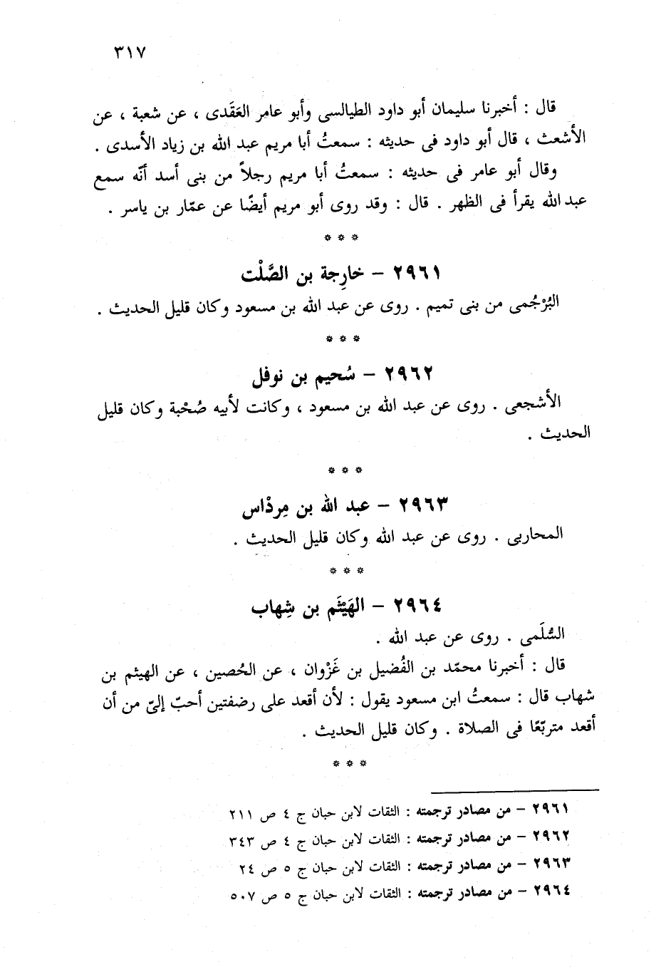 ٢٩٦٣ - من مصادر ترجمته: الثقات لابن حبان ج ٥ ص ٢٤.
