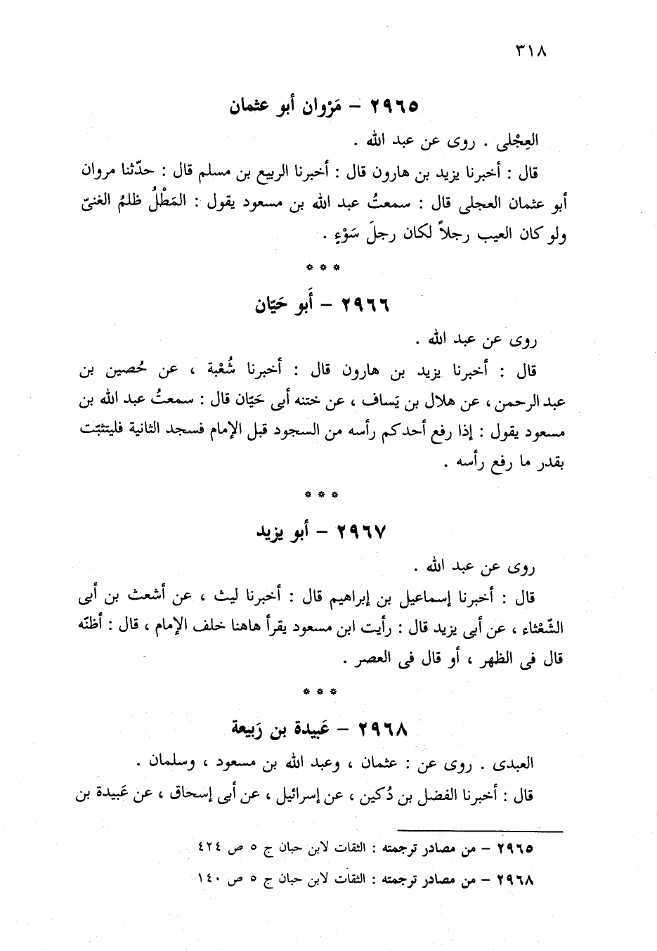 ٢٩٦٥ - من مصادر ترجمته: الثقات لابن حبان ج ٥ ص ٤٢٤.