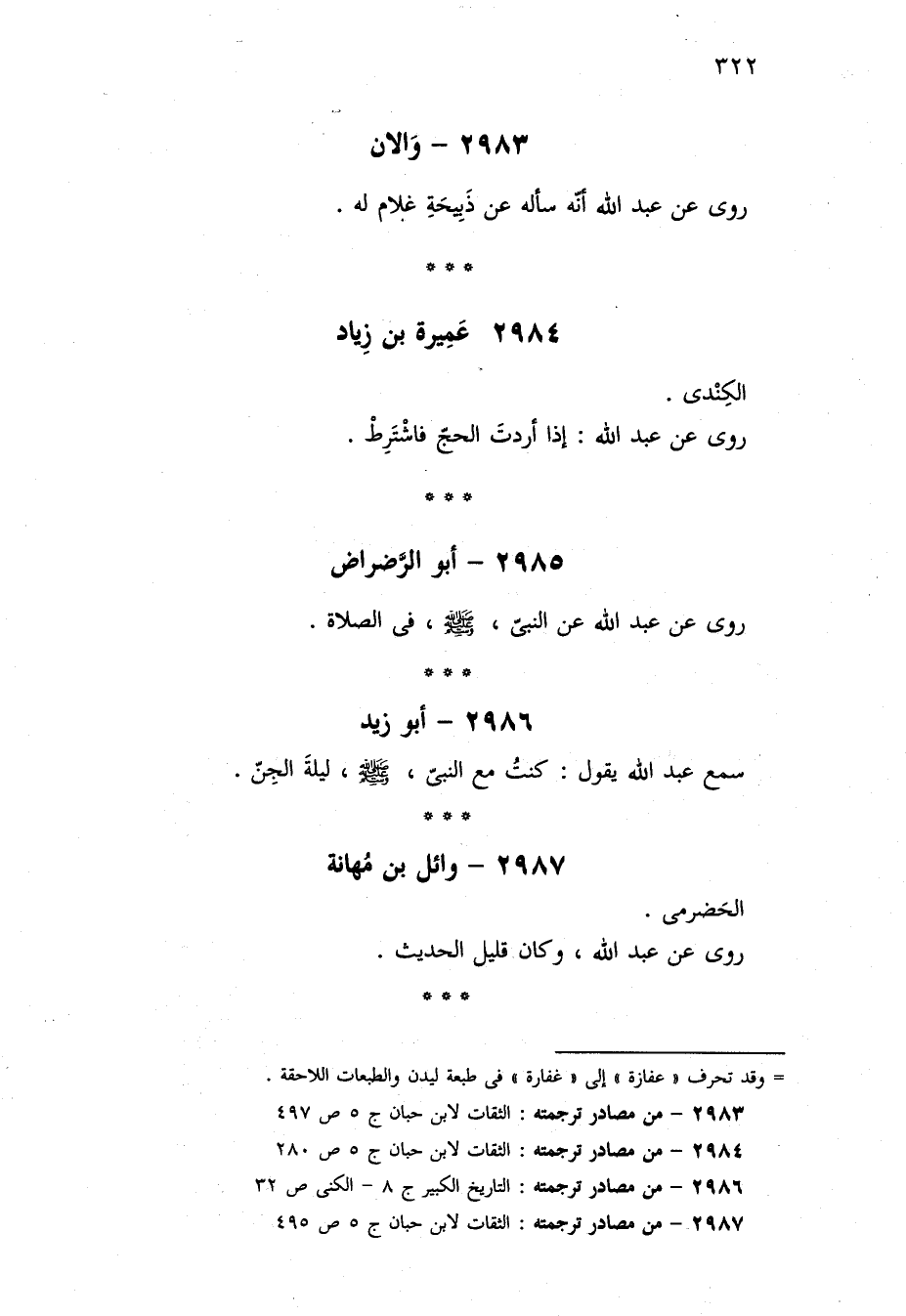 ٢٩٨٤ - من مصادر ترجمته: الثقات لابن حبان ج ٥ ص ٢٨٠.
