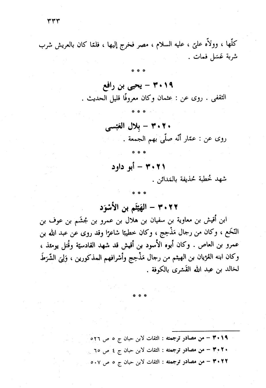٣٠١٩ - من مصادر ترجمته: الثقات لابن حبان ج ٥ ص ٥٢٦.