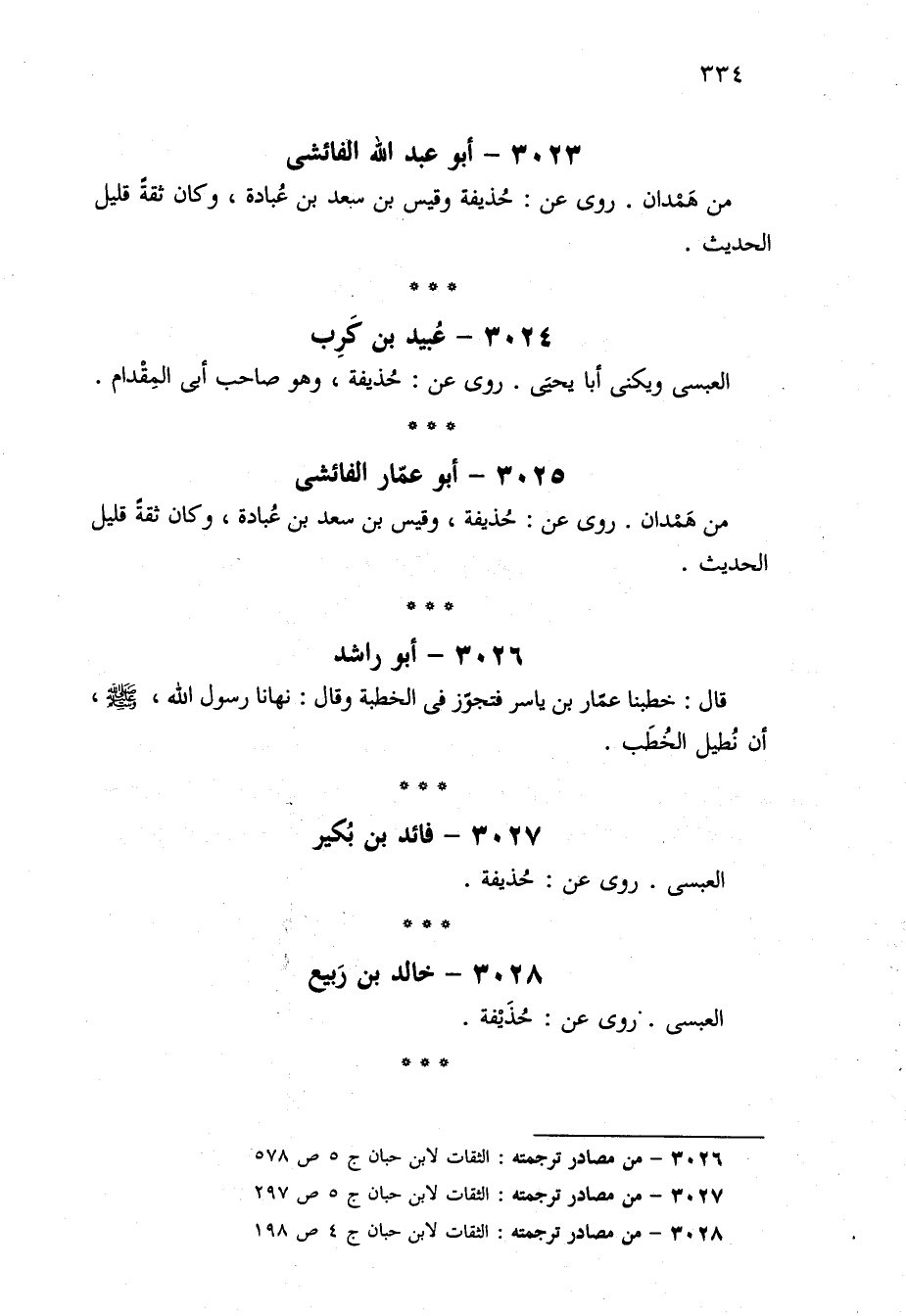 ٣٠٢٦ - من مصادر ترجمته: الثقات لابن حبان ج ٥ ص ٥٧٨.
