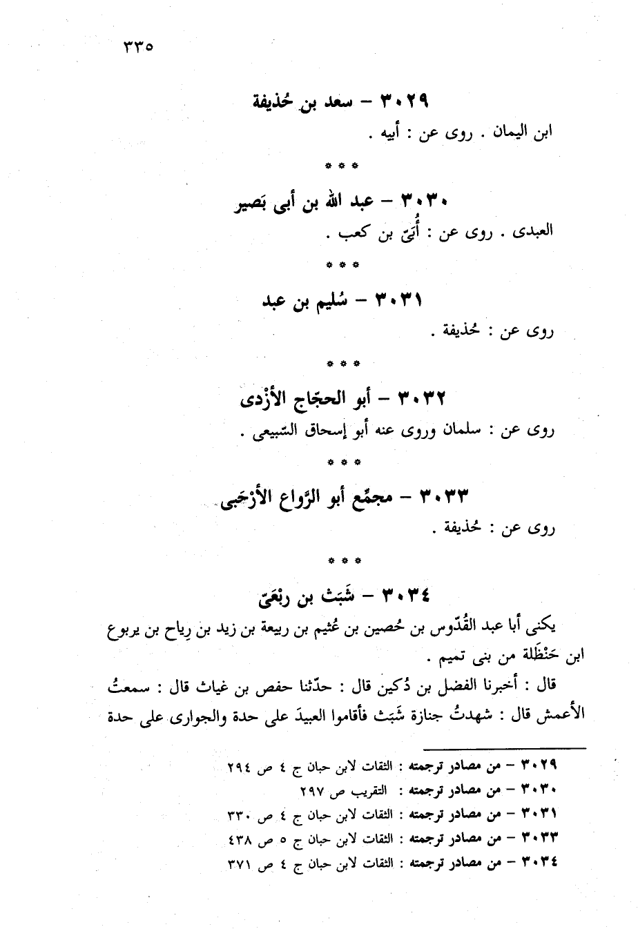 ٣٠٣٣ - من مصادر ترجمته: الثقات لابن حبان ج ٥ ص ٤٣٨.