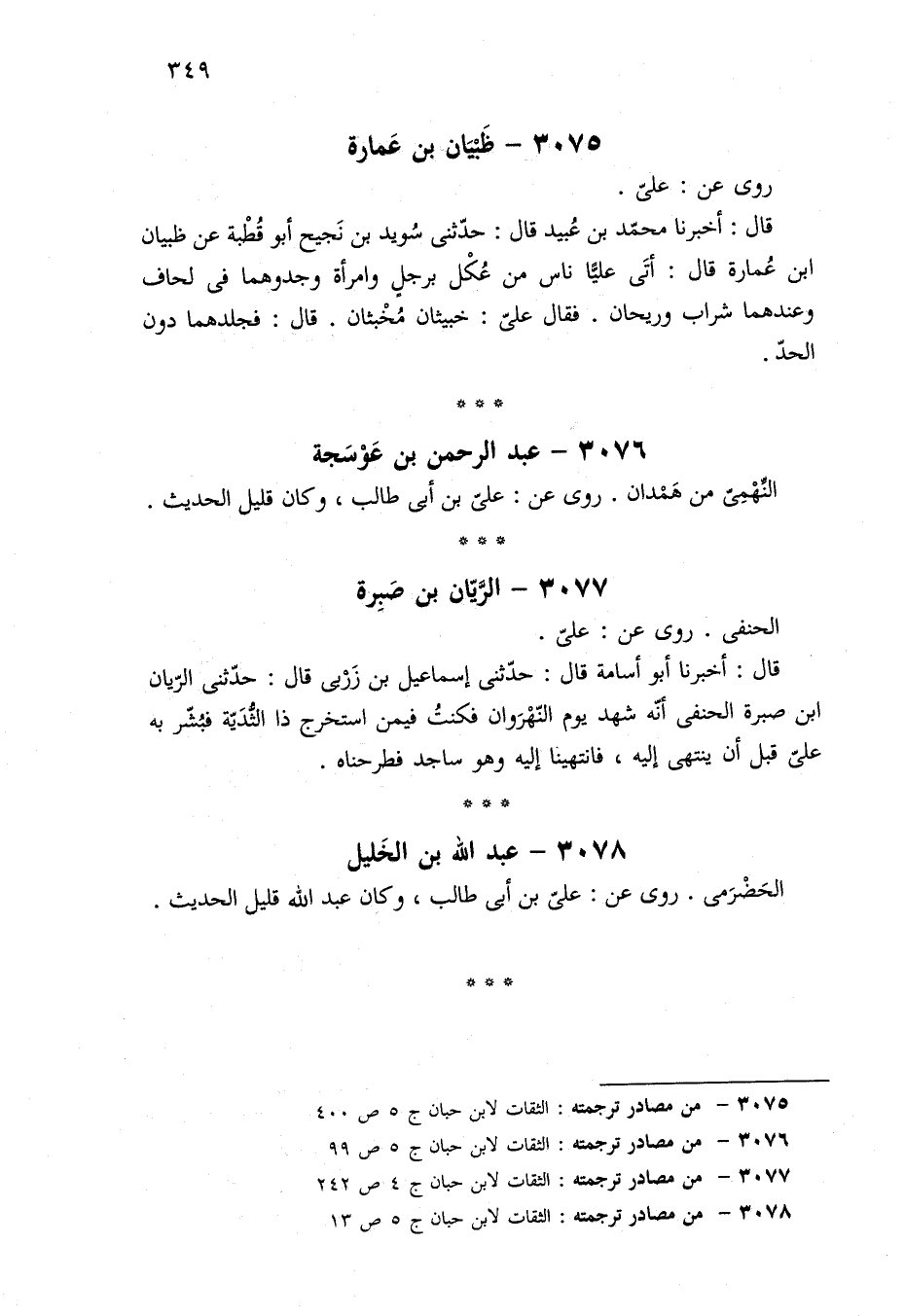 ٣٠٧٥ - من مصادر ترجمته: الثقات لابن حبان ج ٥ ص ٤٠٠.