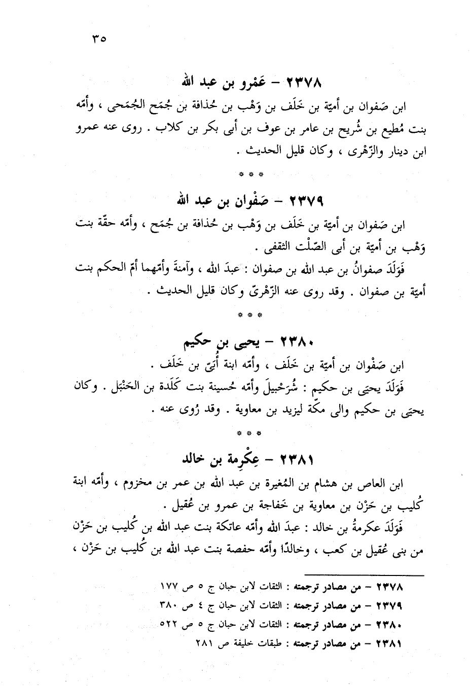 ٢٣٧٩ - من مصادر ترجمته: الثقات لابن حبان ج ٤ ص ٣٨٠