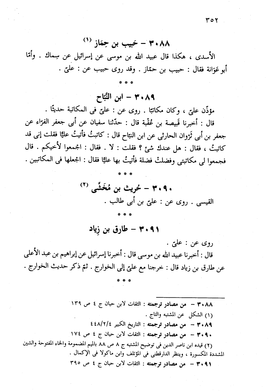 ٣٠٨٨ - من مصادر ترجمته: الثقات لابن حبان ج ٤ ص ١٣٩.