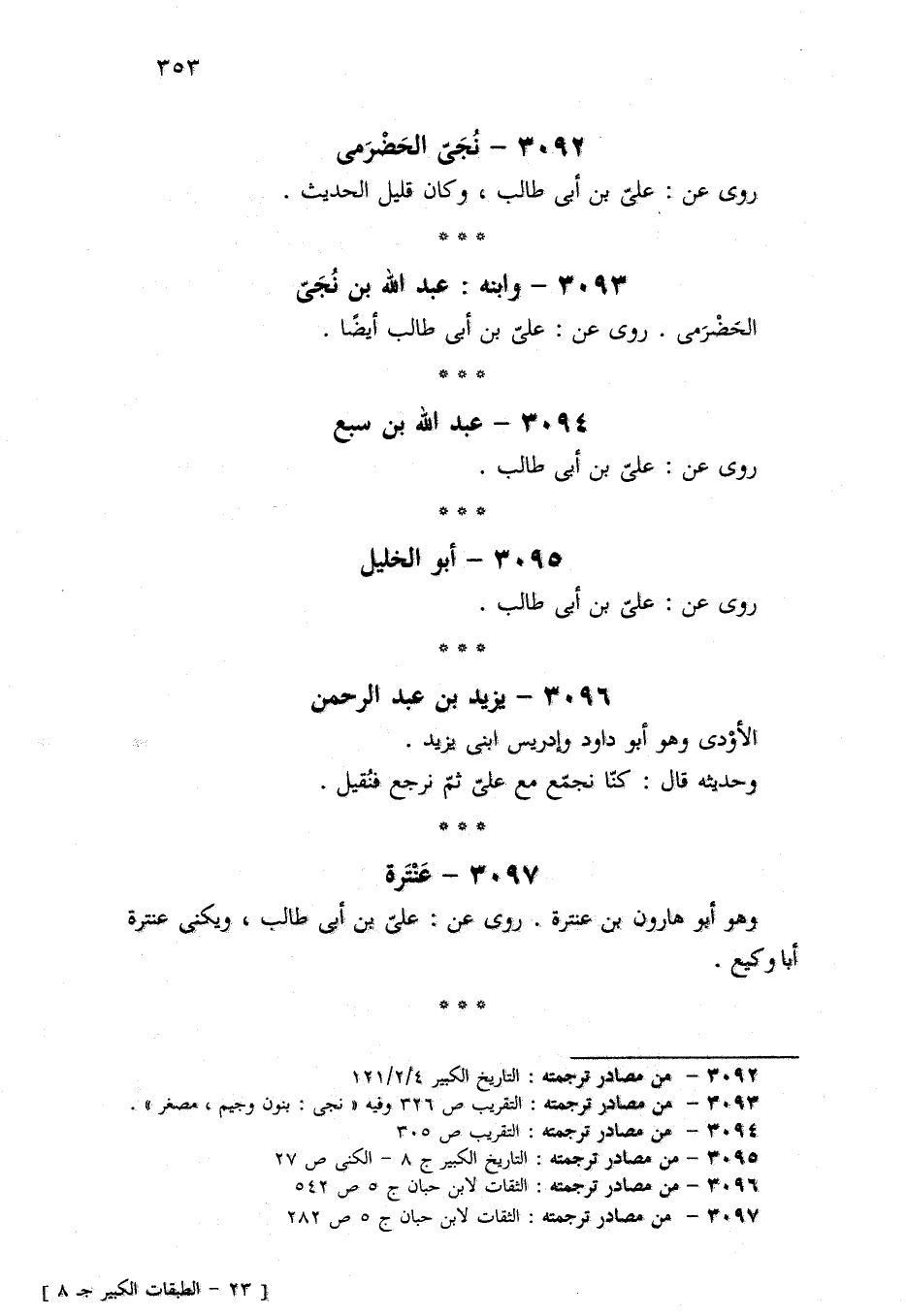 ٣٠٩٣ - من مصادر ترجمته: التقريب ص ٣٢٦ وفيه "نجى: بنون وجيم، مصغر".