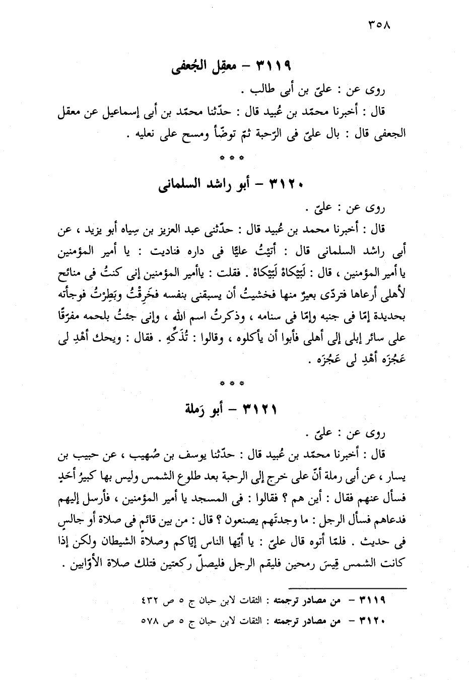 ٣١٢٠ - من مصادر ترجمته: الثقات لابن حبان ج ٥ ص ٥٧٨.