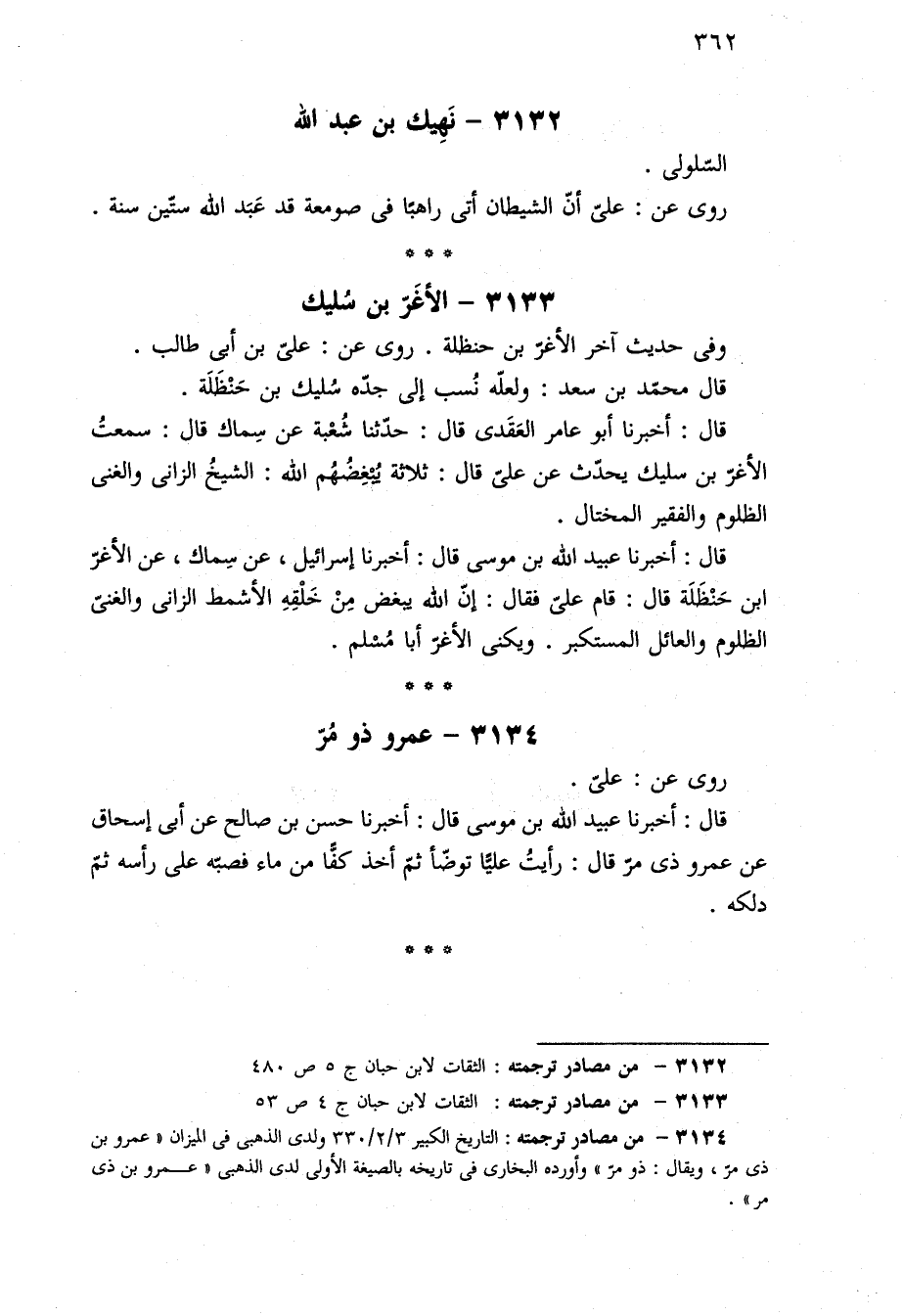 ٣١٣٣ - من مصادر ترجمته: الثقات لابن حبان ج ٤ ص ٥٣.